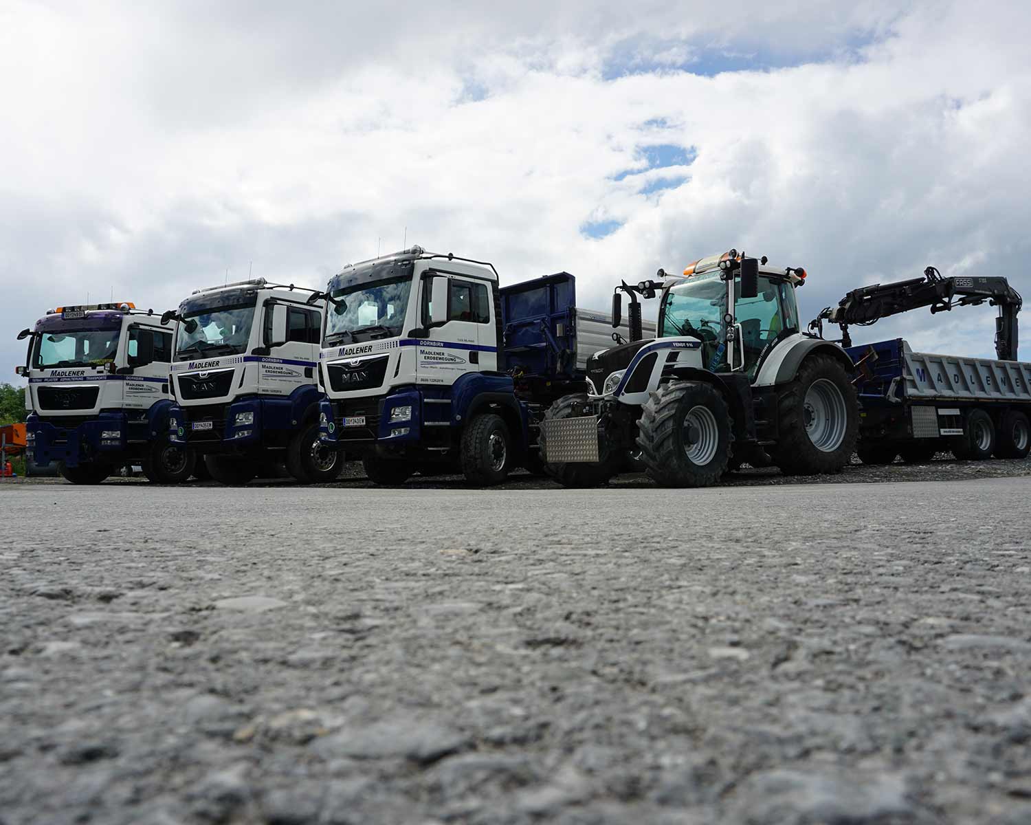 Die Madlener Bau GmbH übernimmt Transporte für Bauunternehmen, Architekten, Planer Kommunen und Private. Wir stehen Ihnen mit unserem großen Fuhrpark zur Seite und bieten Ihnen exakte Arbeit: Das Transportgut laden wir genau dort ab, wo Sie es benötigen.